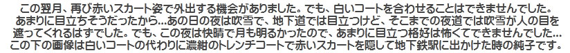 午前の警察署や午後の外出ではパンティは許されませんでした。でも、自転車に乗って外を回った夜はスカートの下にパンティを穿かされていました。