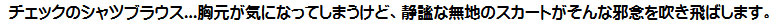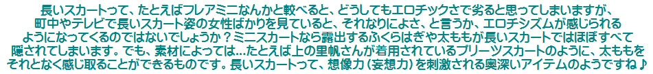 ほかにも素敵なコーデがいっぱい...スカートは紺や赤...ミニやロング...フレア、プリーツ、タイト...トップもボトムも好みは分かれるけど、スタイルとしてはどれも大好き...