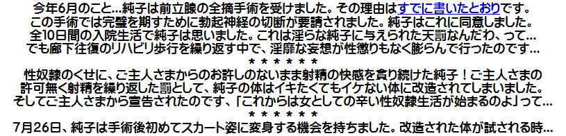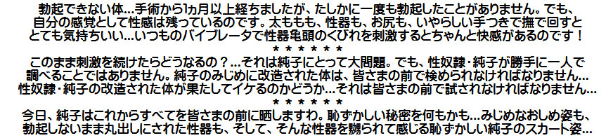 みじめな体に改造されてしまった純子だけど、スカートの下にはいつものランジェリーを着けています...