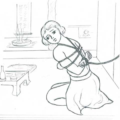 スカート姿の純子が捕らえられ、これから始まる厳しい訊問のことを思っています...