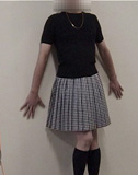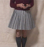 | 白いソックスとバイアスチェックのフレアーミニスカートまたはギンガムチェックのプリーツミニスカート | |