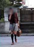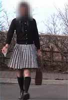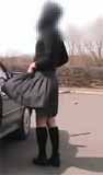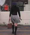| 紺無地プリーツミニスカート姿の純子が風の意地悪を受けて... | ||