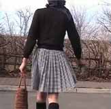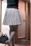 | 千鳥格子プリーツミニスカート姿で外出する | ||