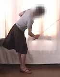 | 新しいビデオカメラで撮影する純子のスカート姿...横長フォーマットが、ベッドに広がるスカートを捉えるのに向いています。 |