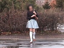 | 雨の公園を歩くプリーツミニスカートの裾を撮影されて(パンプスの音が入っています) | |