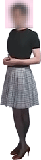 上の撮影から2週間ほど後に、同じプリーツミニスカートを着用する機会があったので、デジカメ撮影しました。