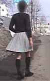 左肩に掛けてそれを左手で支えていました。顔にはマスクをしていたので、右手でスカートを 抑えることができました。でも、純子の目には、風に乱れたスカートの裾から肉色の太ももが、 実に生々しい光景として飛び込んできました。どの程度スカートが捲くれ上がって、太ももが どんなふうに露出しているのか、自分では分かりません。でも、延々と続くヘッドライトの中で、 純子は歩き続けなければなりませんでした。時間にすれば、10秒か20秒くらい...でも、 とても長く感じたし、きっと、車の中の人たちは暇だから、スカートを風に乱されて太ももを 晒して歩く純子をじっくりと見ているだろうなあ、って思うと怖くなってきました。誰かが 純子が男だと気づいて、車から降りて来るかもしれない...そう思うと、すっかり 怖気づいてしまいました。車列が尽きた後で振り返って安全を確認しました。 |