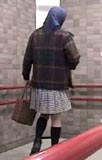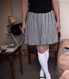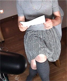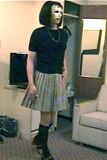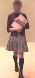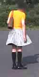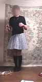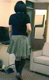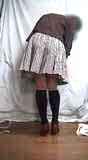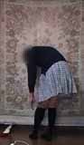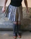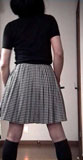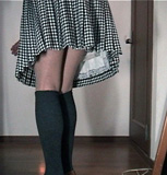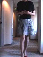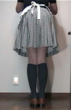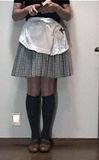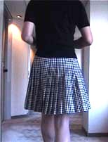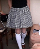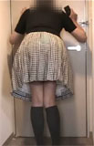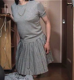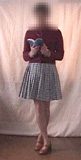 この日は、最初、千鳥格子プリーツミニスカートをスリップ1枚で着けていました。(その時の写真はこちらをご覧下さい。)