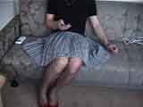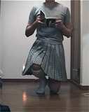 | ここからが今回新たに撮影した動画からのイメージです。2011年6月の撮影です。2009年7月以来、 2年ぶりに着けるギンガムチェックのプリーツミニスカート...しかも、スカート姿に変身したのも、今年の2月 以来だったので、純子はとても興奮してしまいました。夜は外出と決めていましたが、それまでの時間は室内で 自由に過ごすというだけで、特に目標はありませんでした。このスカート姿で雑誌やインターネットを見ているうちに スカートの中の純子のからだは徐々に熟れて行きました...撮影した映像を見直した時、それは完熟していました。 |