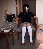 何か分かりませんが、この日も前夜に続いてこのスカートで過ごしました。手に持っているのは笞です。何のため?
