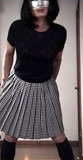 千鳥格子のプリーツミニより裾丈が長いので、スカートの中の秘密を知られることもなく、安心して駅や通りを歩くことができました。