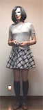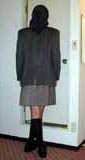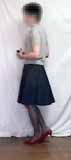 このスカートで撮影するのは2度目です。前回はこのスカートに普通の男物ブレザーを合わせて外出しました。