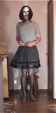 この撮影の朝には、ほんのちょっとの間だけこのスカートを着けてみました。ランジェリーは倉庫の時と同じでスリップ1枚だけです。