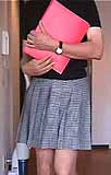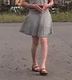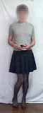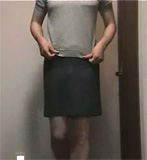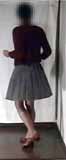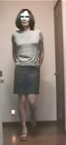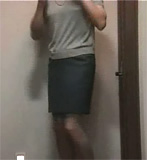 久しぶりのスカート姿に興奮してしまい、撮影の時にはいろいろミスを犯してしまいました。このグレー無地のタイトミニスカートの時も、