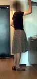 このフレアースカートは数年前、妻の母が妻のために作ったもので、妻のふくらはぎ下丈です。