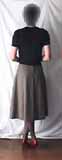 グレーのプリーツと比べると少し長めです。裏地はついていません。ウール100%で生地としてはかなり重く色も濃いので秋冬向きです。