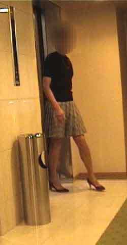 ビデオカメラを回しっぱなしにして行ったから、 降りてくるときの姿を撮影できました。 緊張がとけた感じ。 部屋に入ってドアを閉めたときは、かなりの達成感がありました。 缶紅茶がおいしかった。 スカート姿全身を鏡で見ながら、もし人に会ってたら、って考えました。 人に会うのが怖いんだけど、心のどこかで、見られてみたいって思っているんです。
