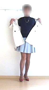 コートを脱ぐと、スカートの全貌があらわに....