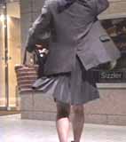 強い風に揉みしだかれるスカートをアップで撮影。スカートだけじゃなく、ペチコートやスリップも揉みしだかれて...