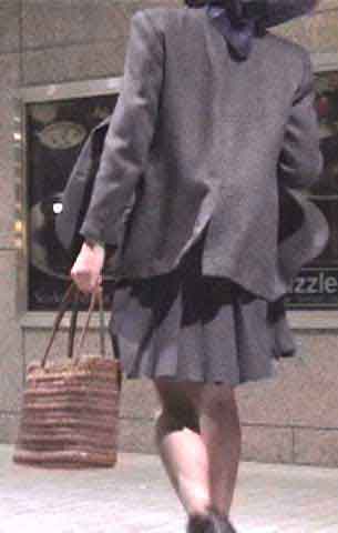 スカートも風を受けてプリーツが目いっぱい広がっています。