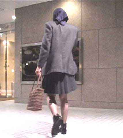 歩き始めたこの時は、ちょうど風の息の時でした。スカートも乱れていません。