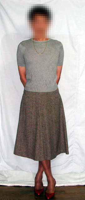デジカメで撮影しました。スカートやニットの手触りが感じられるくらいです