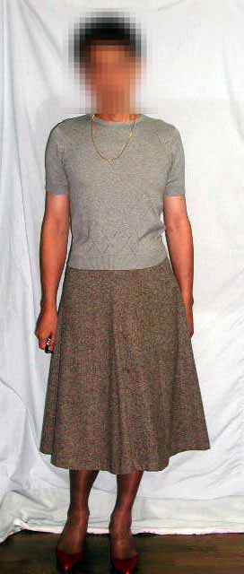 撮影のために着けてみたのですが、撮影終了後はいつものギンガムのプリーツスカートに穿き替えました。 このロングスカートだと家庭的というか、家の中でのファッションていう感じで、緊張感がなくなるのが難点です。 撮影のためと言うことですけど、それでもスカートの下にはいつもの純子の下着を重ねて着けています。