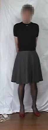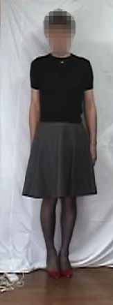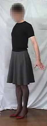 ウールフランネルの膝丈フレアースカート。確かダイエーかイトーヨーカ堂です。 フレアーがきれいに出て、妻も私も好みのスカートなんです。 裏地が少しタイトめで、ペチコートの有り難味が効きません。その点が残念。 このスカートなら外出も可能と思いますが、今だ実行なし。 体脂肪が気になるこの頃、ウエストにゴムが入っているのがうれしいわ。