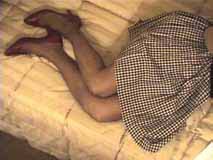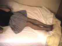 ベッドが体重で沈んだので、その分、スカートが引っ張られたのね。