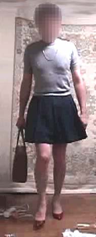 取調べの係長は、実は、プリーツミニスカート姿で女装の男性。女装の純子をどう扱うかは熟知です。