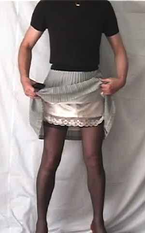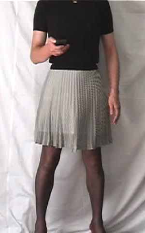 細かいプリーツのミニスカート。生地が軽くて飛んでしまいそう。裏地もすごく薄いの。