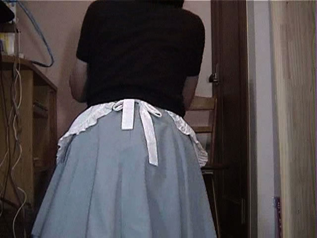 白いエプロンは、後ろから見るとこんな風に見えるのね...自分では分からないから...お尻を高く上げるようにご命令を受けた純子です。