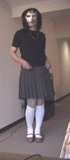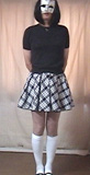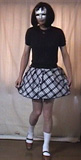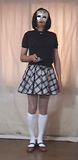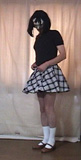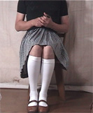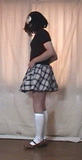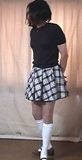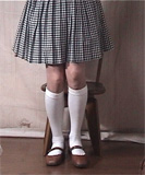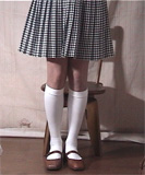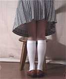 いつものギンガムチェックのプリーツミニスカートに合わせて見ました。これは白ハイソックス"B"です。純子に似合うかしら?