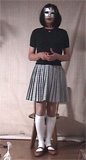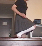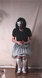 女の子っぽく礼の仕草をしてみました。スカートの裾を両手でつまんでスカートを拡げ、片足を曲げてお辞儀をします。