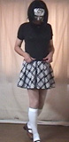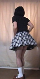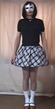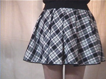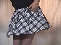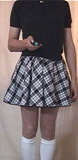 バイアスチェックのフレアーミニスカートに合わせて見ました。恥ずかしいくらい短いスカート...ちょっと屈んでもその中が...