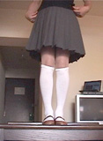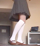 ここは白ハイソックスがテーマですが、ローアングルからの撮影でスカートの<魅力>がよく出ているので展示します。