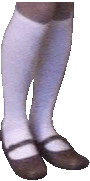 白いハイソックスとブラウン系パンプスの甲ベルトの組み合わせがとてもかわいい...子供っぽくもあるし、大人のコケットリーも...