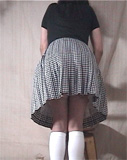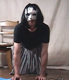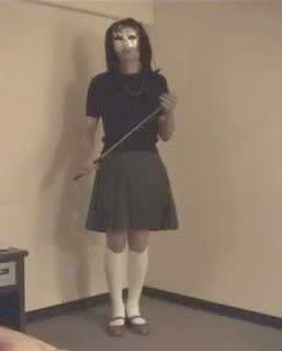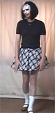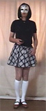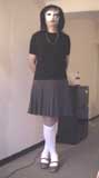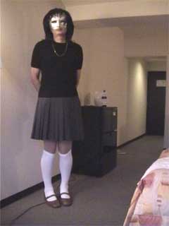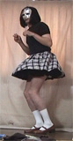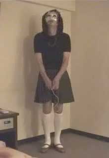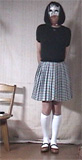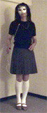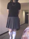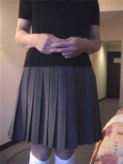 彩子さま... 先だっては、急なお願いにもかかわらず、純子を辱めて頂き有難うございました。 お忙しい中、貴重なお時間を純子のために割いて頂き、心からお礼申し上げます。 とてもうれしかった...純子は辱められて性的な快感を貪るいやらしい変態中年男です... あの日から2ヶ月以上たった9月の初めに、純子は再びスカート姿に変身する機会を持ちました。 出張先でのことなので、密かにホテルの部屋だけのスカート生活でした。グレーの膝丈車襞スカート... ライブショーもチャットもできませんでしたが、純子の心の中では彩子さまのご命令がきびしく響き渡っていました... まず、純子に着用をご命令の白いハイソックス...生まれて初めてです。今回のプリーツスカートに合わせてみました 次に、きびしくご命令の「羞恥ダンス」...森高千里の<17才>の恥ずかしい振り付けを純子が練習している映像です。 これらの映像はすでに彩子さまにご覧頂きました。そして彩子さまのご命令どおり、ここにその時の映像を公開いたします... 皆さま... 彩子さまからのきびしいご命令で、ここに純子の恥ずかしいスカート姿の映像を晒しものにいたします。 純子のこんなスカート姿が皆さまの性的快楽に少しでもお役に立てれば、純子はとてもうれしく思います。 いやらしく欲情した視線でスカートの中を透視されている...そう思うことで性的快楽を貪る変態純子です... 純子は彩子さまだけの性奴隷ではありません。できるだけたくさんの方々に寄ってたかって辱められたい変態です。 (きっと彩子さまもお望みのことと存じます。清楚なスカートの中に淫靡な秘密を隠した純子がみんなに凌辱される光景...) 純子に何か意地悪を命令したいとお思いの方、純子を辱めてやりたいとお思いの方は、ご遠慮なく純子にお命じ下さい。 メールはこちらです。<純子への命令よっ!> 10月下旬予定の純子の公開スカートライブはこちらをご覧になってください。