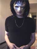 インターネット越しに遠隔操作で純子を拷問するための電気ショックです。 肛門を犯している金属棒と手に持った指示棒とが、電気ショックの電極です。 この2本の電極は低周波治療器につながって、腰揉みモードに設定されています。 指示棒が純子の陰茎や陰嚢、太腿に触れた瞬間、ビリビリビリッと電気が流れます。 ライブカメラでは、バイブのようにオンオフを示すランプが電気ショックにはありません。 純子がほんとに電気ショックを受けているかどうかは、純子の反応でご判断ください。 この動画でも、指示棒が純子のからだに触れた瞬間、純子は身を捩って苦悶します。 これはおおげさな演技ではなく、嘘でもありません。ほんとに痛い...熱いんです... |