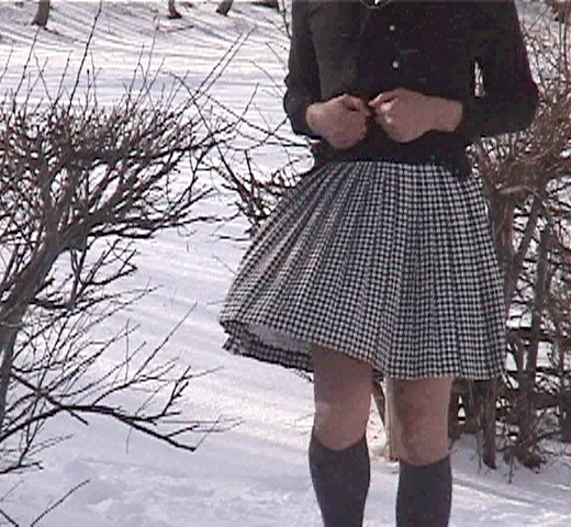 雪と風...厳しい自然と無防備なプリーツミニスカートのミスマッチが被虐的な性向の純子を高ぶらせるのでした...