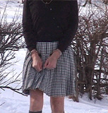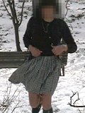 冷たい風と雪の責め折檻を受けるプリーツミニスカート姿の純子 この年はじめて降った雪の積もった日が、何ヶ月ぶりかのスカート女装の日となってしまいました。風も強そう... こんな日、きっとあの公園には誰もいない、いるはずがないわ...そう思いました。道路の雪はすでに消えています。 純子はいても立ってもいられなくなって、部屋を飛び出しました。到着してみると案の定、誰もいない真白の公園... <雪と風>という厳しい自然条件と<プリーツミニスカート>という無防備な服装の峻烈な対比に純子は興奮して... |