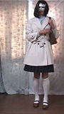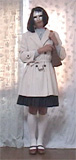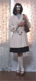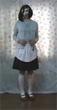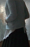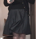 | このスカートもはじめて着けるもので、撮影もはじめてです。なので、別にコーナーを設けて写真をアップしました。ここはエプロン関係です。 純子のスカートとしては長い方で膝丈と言っていいかと思います。黒に見えますが、チャコールグレーの総襞プリーツスカートです。裏地なし。 実はこのスカートを着けている時に、このエプロンを試してみようと思い立ったのでした。前日にずっとこのスカートで暮らした翌朝のことでした。 このスカート姿でお洗濯をする準備をしていた時に目に留まり、おや、意外と合うかも、って閃いて鏡の前で着けて見たのがはじまりでした... |