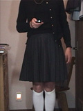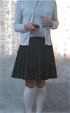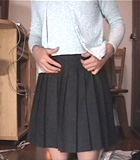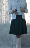 ![]() 去年(2008)の秋は、純子としては異例のことですが、スカート姿で過ごせる日々が続きました。 といっても週日は夜だけ、土曜日は夕方からしか自由にならないから、終日スカートで暮らせるのは、 日曜祝日だけでした。そんな中で公開とプライベートのライブショーで純子のスカート姿を見て頂きました。 今日はどのスカートにしようかな、って選び始めると、どうしてもフレアーミニスカートを選んでしまいがちです。 理由としては、脚さばきがよく、動きやすいということがあります。鏡に映した時にうれしい気持ちにもなります。 それになにより、スカートの中に手を入れやすいということがあります...屈まなくても入れたい時にいつでも... 日常生活だけでなく、ライブショーでもフレアミニスカートでした。同じ見て頂けるならミニで、と思ってしまいました。 そんなわけで、ずっとミニスカートだったから、このスカートを見つけて軽い気持ちで着用した時の感覚には驚きました。 フレアーミニだと、スカートの裾が脚に触れることはあまりなく、太ももや膝あたりはまったく自由で、触られ放題です... このスカートはずっしりと重く、丈も長いから、歩くとスカートの裾が膝や太ももに触れて、すごく新鮮な感覚だったんです! ロングというほどではないですが、これだけの丈があると、簡単にスカートの中に自分の手を入れることもできません。 その意味では禁欲的なスカートと言えるでしょう。鏡に映してみると、とても清楚な雰囲気で、脚もしっかり隠れています。 純子はその時、決心しました。今日はこれから、このプリーツスカートでいよう。明日の夜のライブもこのスカートにしよう、って。 まったく地味なスカートで、華やかさはありません。白のハイソックスを合わせることで何とか可愛らしさを演出したつもりです... |