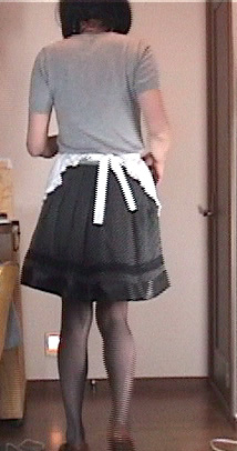 純子のお尻は女性と比べればとても貧相なのでペチコートでごまかしていますが、エプロンがアクセントになって、