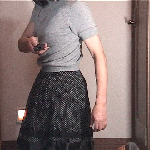 純子の今日のトップスは薄グレーの半袖ニット...胸が膨らんでいるのはブラジャーのせいです。