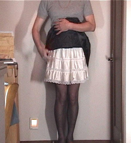 純子はスカートの裾を両手でつまみあげ、ペチコートやスリップやパンティーについてきびしく追及されます。