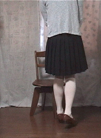 純子は椅子に座らされます。両膝と足首をかたく合わせて、スカートの中のしっかりと秘密を守ります。