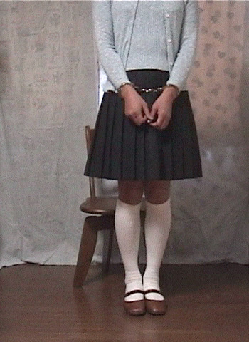 純子は椅子に座らされます。両膝と足首をかたく合わせて、スカートの中のしっかりと秘密を守ります。
