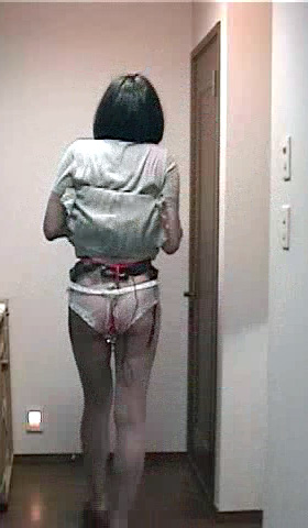 スカートもスリップも捲り上げて、お尻を剥き出しにして歩かされる純子です。