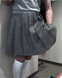 グレーのサマーニット(胸を強調するため)、白いハイソックスを合わせました。下着やストッキングに